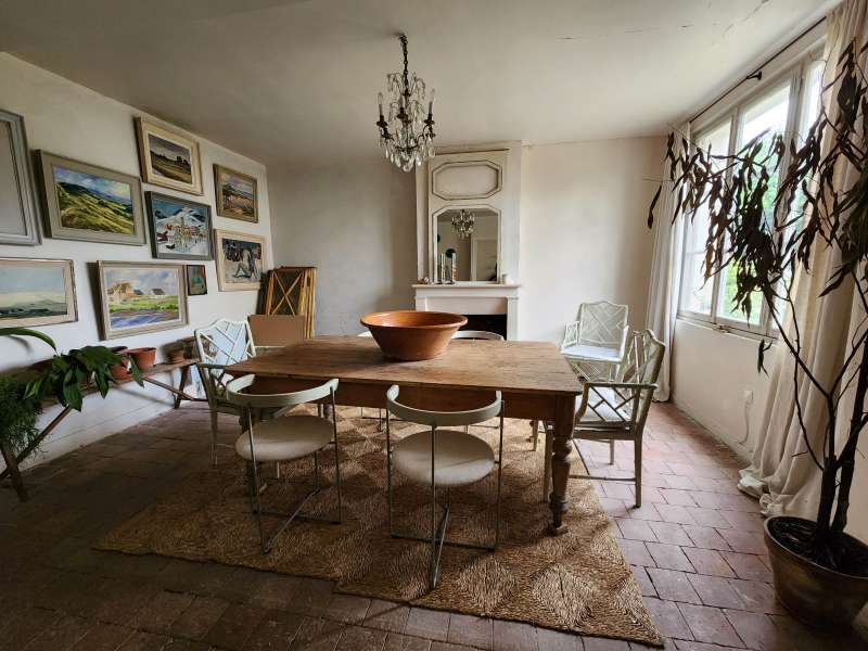 Vaste maison de village comprenant : entrée, un salon sur tomettes authentiques avec cheminée, une arrière-cuisine donnant sur une lumineuse cuisine avec coin repas, un vaste salon avec poêle Godin, une buanderie, un troisième salon avec poêle Godin, une chambre, une salle d'eau, un wc. Etage au dessus du grand salon donnant accès à un palier, une chambre, une salle de bains avec wc. Autre étage comprenant un bureau, une vaste chambre dortoir, une autre chambre. Terrasse sur l'arrière, jardin clos et dépendance. Des matériaux authentiques et beaucoup de charme.