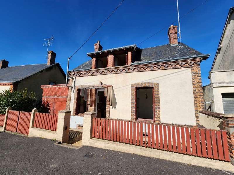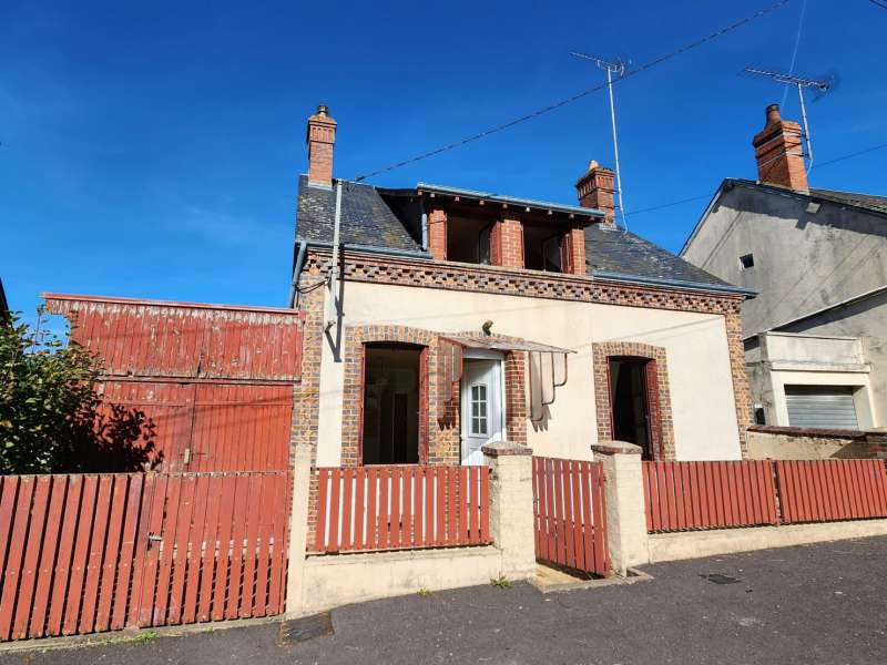 Maison de ville, 75m² hab, deux chambres et un bureau, garage et dépendances, jardin sur l'arrière, proche des commerces et écoles.