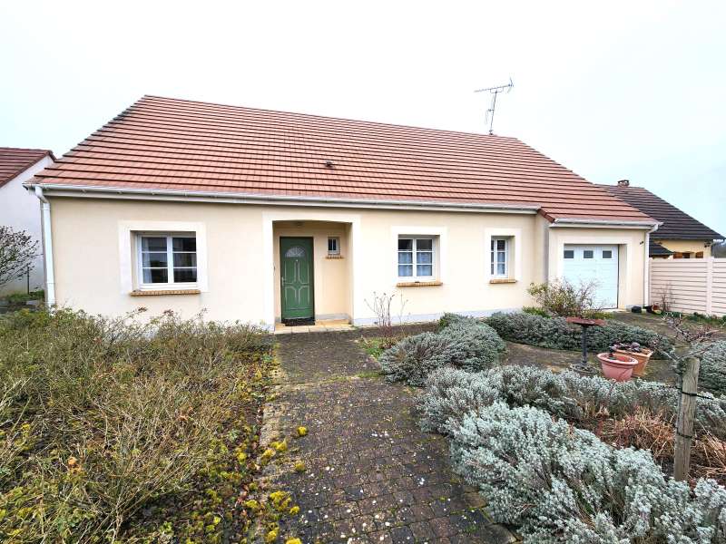 Superbe pavillon de plain-pied, 100m² hab, 2 chambres, construction 1999, grenier aménageable, garage, jardin sur une parcelle de 787m².