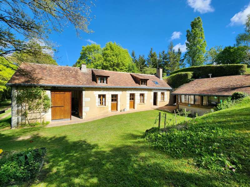 Superbe longère dans un cadre exceptionnel, 2 chambres, grange attenante, caves, véranda, four à pain. Magnifique terrain arboré et valonné de 8338m². A 15 min de Vendôme, bien rare.