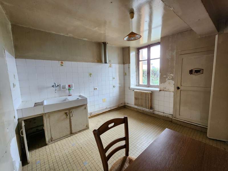 Maison de village comprenant : une pièce de vie avec poêle à bois, une cuisine, dégagement, salle d'eau, wc, chaufferie. Grenier aménageable sur l'ensemble. Cour derrière et courette devant avec puits. Jardin de 176m² en face, garage non attenant de 30m² plus bas dans la rue. Idéalement située, proche des commerces et écoles.