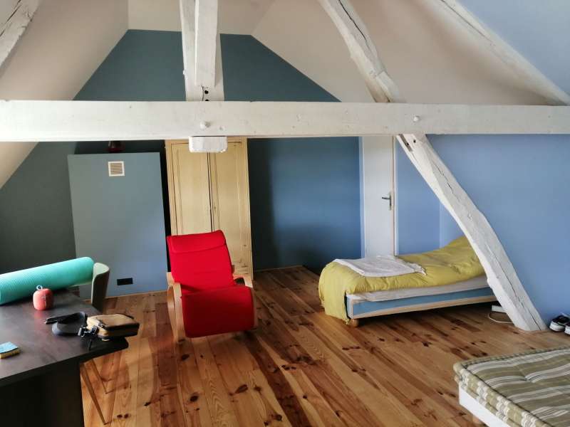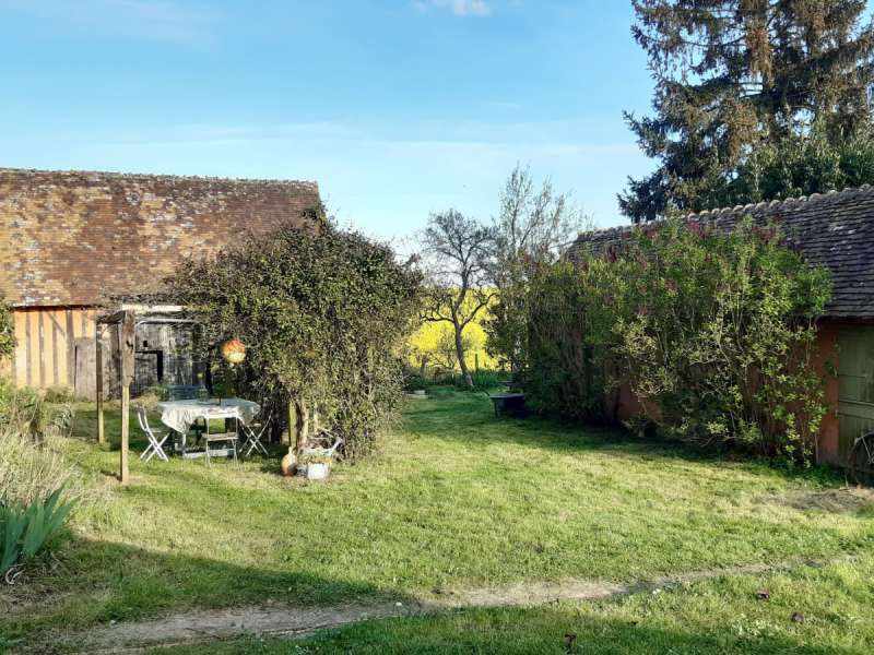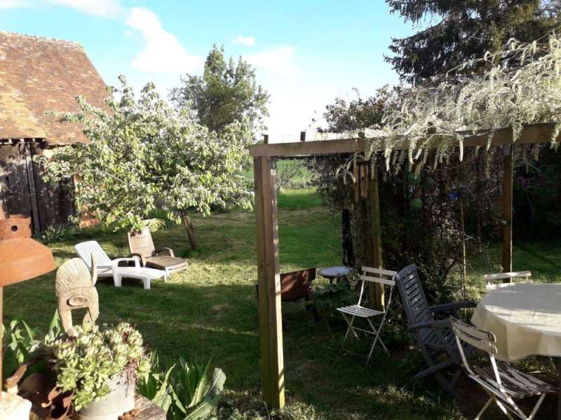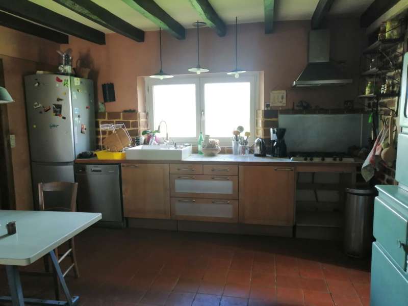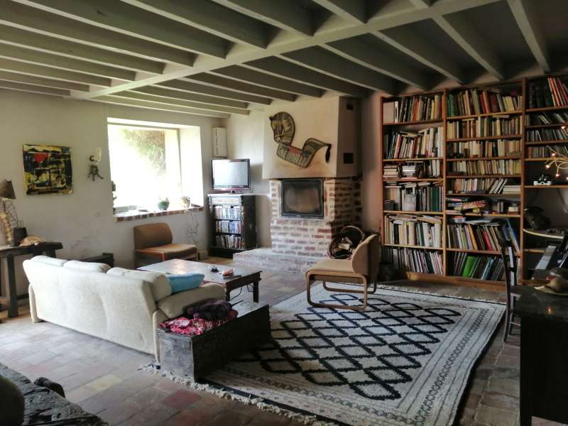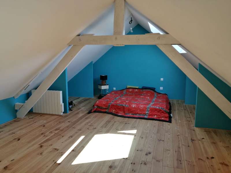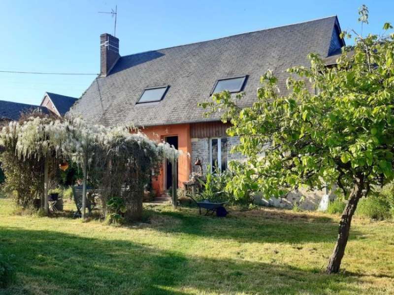 Longère rénovée avec goût dans des matériaux écologiques de qualité, sur 4251m² de terrain. Rdc : Grande pièce de vie avec cheminée-insert sur sol en tomettes authentiques, cuisine semi-ouverte, cellier, cave. Belle chambre, bureau, salle d'eau, wc. Ancienne écurie attenante. Etage : Lumineux palier, deux grandes chambres mansardées, salle de bain. Dépendance en retour : grange en colombages. Autre dépendance aménagée en atelier d'artiste avec grenier. Anciens toits à porcs, mare, verger, pâtures sur terrain dominant de 4251m². Rénovation de qualité, beaucoup de charme.