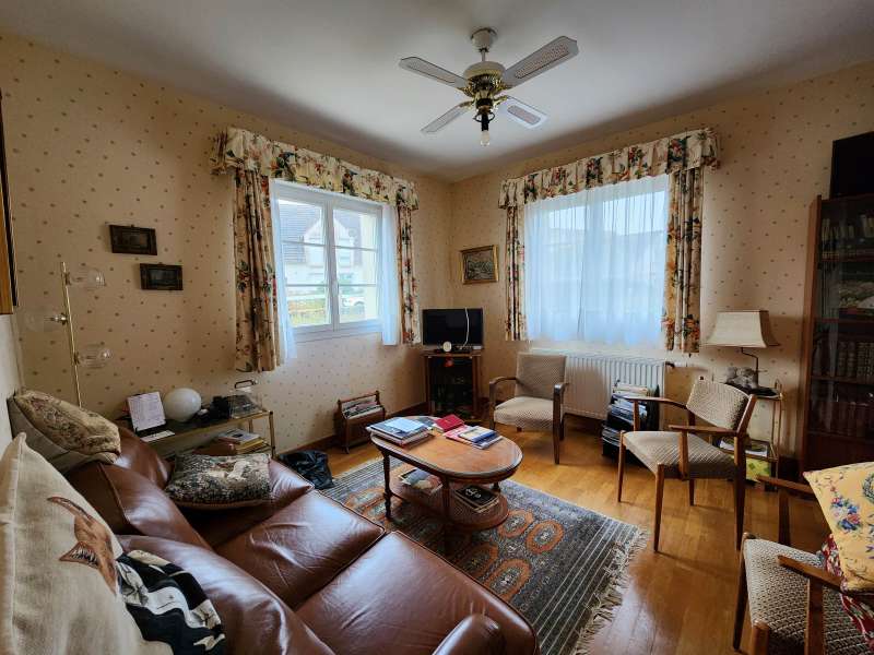 Lumineux pavillon de plain-pied, comprenant : entrée, salon-séjour sur parquet chêne, cuisine aménagée, cellier, couloir desservant deux chambres, une salle de bains, wc. Garage attenant avec chaufferie. Etage : grenier aménageable sur l'ensemble avec escalier intérieur. Jardin clos tout autour sur une parcelle de 787m² avec cabanon de jardin et terrasse. Environnement calme, proche de l'école, de Mondoubleau et ses commerces. 25 min gare TGV Vendôme