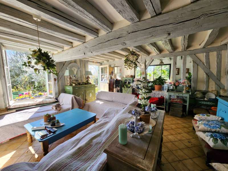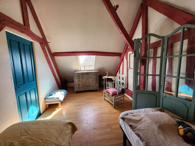 Ravissante maison de campagne comprenant : pièce de vie avec poêle à bois (colombages), cuisine semi-ouverte, une chambre, dégagement, salle d'eau, wc. Etage : une pièce palière desservant deux chambres. Superbe terrain clos arboré (verger) sur une parcelle de 1021m² avec une terrasse au sud, une grange et une agréable pergola. Beaucoup de charme pour cette maison nichée au coeur d'un environnement valonné et verdoyant.