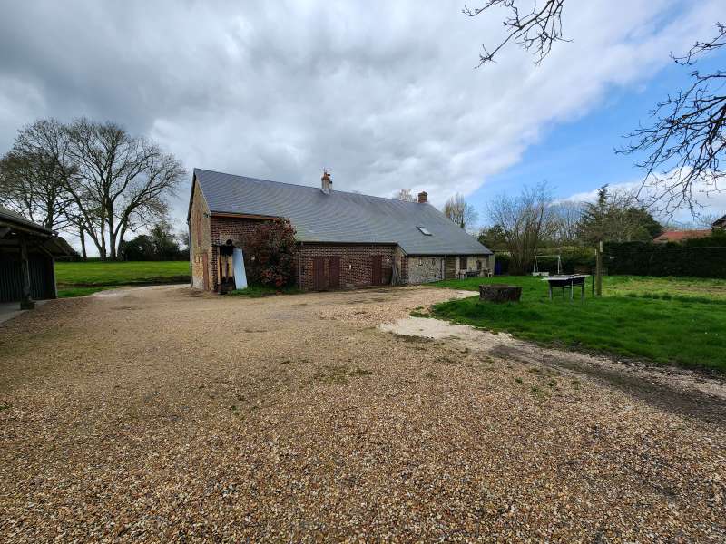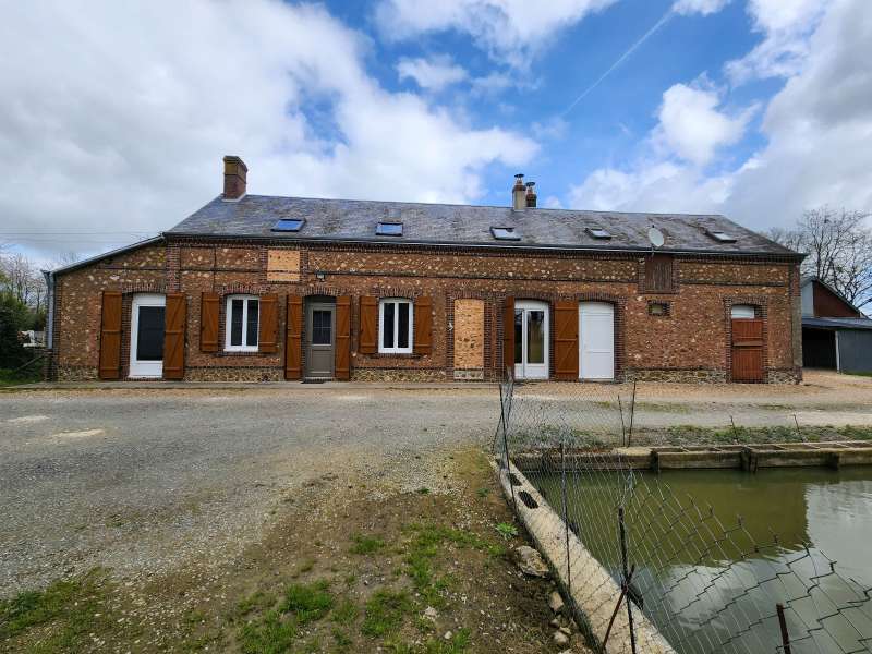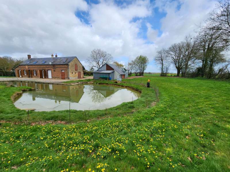 Longère authentique, 106m² hab, 4 chambres, nombreuses dépendances, sur un terrain de 3979m² avec mare et puits, au calme, en campagne.