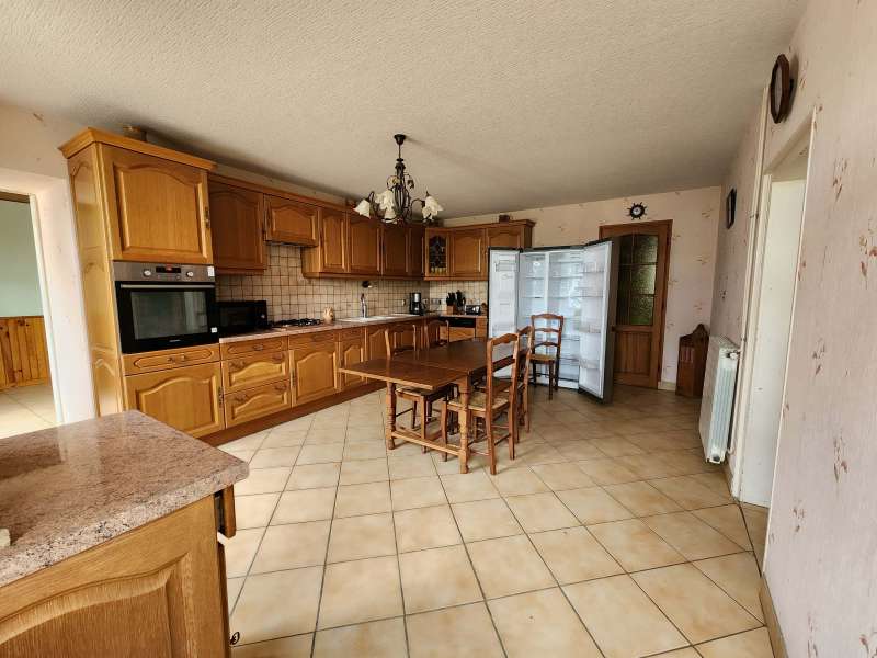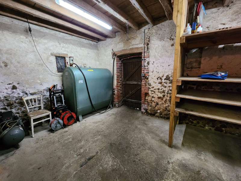 Belle longère comprenant : un salon-séjour avec cheminée-insert, une cuisine aménagée/équipée, une chambre, une salle d'eau, wc, cave. A l'étage : un palier desservant 3 chambres. Dépendances attenantes : ancienne étable et écuries avec chaufferie, grenier au dessus, anciens toits à porcs, petites dépendances sur l'arrière de la maison. Dépendances sur le terrain : 2 anciennes maillères, appentis tôlés, un garage ouvert en bac acier, un atelier en bac acier. Vaste terrain tout autour avec mare et puits mitoyens sur une parcelle de 3979m² bordé de haies naturelles. Au calme, proche du village de St Agil, à 30min de la gare TGV Vendôme.